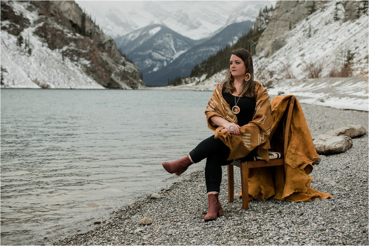 Aaniin! Jaymie Campbell ndizhinikaaz. Nishnaabekwe ndaaw. Nindoodem mukwa. Curve Lake First Nation - Gaawaategamaag ndoonjibaa. New Denver BC - unceded Sinixt Territory niin shigoo daaya. Nimiigwechiwendam. My name is Jaymie Campbell and I am Anishnaabe from Curve Lake First Nation in Ontario but currently reside on unceded Sinixt territory in New Denver, BC. I am of mixed heritage and my mother’s family is Scottish, Ukranian and Polish, though our families strongest ties are to Scotland. I was raised by my parents, Lindsay and Heather, and owe them a great deal of gratitude for being a constant source of support and encouragement. Chi miigwech. I was born in the Rocky Mountains, in Jasper, Alberta and grew up on the lake in Southern British Columbia. As a child, I moved home to Curve Lake with my family and spent my teenaged years in Ontario. I attended Lakehead University in Thunder Bay, and graduated with two Bachelor Degrees in Biology and Outdoor Recreation. Upon completing University, I returned to the mountains in the West and moved North to the community of Grande Cache in Alberta. Here, I worked in a Cree community for seven years as an Associate Director and worked on consultation, community building, negotiation and protection of land. It was here I discovered my passion for policy, governance and capacity building within our communities. I had the great fortune of being mentored by elders and traditional knowledge keepers of this community and others, also discovering my deeper calling to artistry and design. I am a wife, daughter, auntie and sister. I love the outdoors, paddling, writing, travelling and photography. Most days you can find me nestled in with my pup reading, writing or beading. My hope is to translate my passion into jewelry and fashion that resonates within our Indigenous communities and beyond. Chi Miigwech.